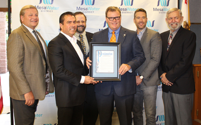 At the Mesa Water District’s Board of Directors regular meeting on Thursday April 14, the City of Costa Mesa was recognized for its water conservation efforts and presented with the “Mega” Mesa Water Saver award.