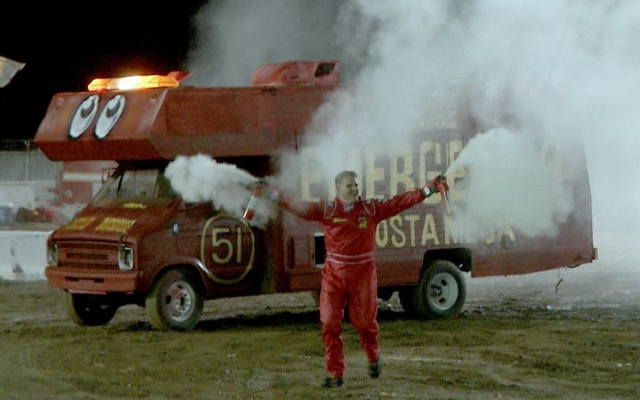 Before the event began all participants exited their RV’s and ran around the arena waving their arms and getting the crowd pumped up. Stefano ran around with two fire extinguishers, which set the crowd off.