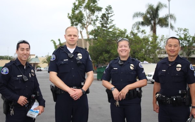 One recent Friday, officers, Slawek Luczkiewicz, June Jeong, Katrina Cover and Sgt. Bang Le walked through local shopping centers and strip malls, ensuring that transients were not loitering or sleeping there.